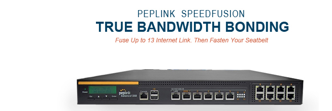 Shift WAN data transfer, video delivery, VPNs, and more into overdrive with Peplink SpeedFusion. Peplink's patent-pending SpeedFusion true bandwidth bonding technology combines the bandwidth of up to 13 cable, DSL, 3G/4G/LTE, and other links to drive high-speed, high-reliability, and high-security networking -- all at a lower cost, with fewer maintenance headaches. Whether you're transferring a single file or sharing dozens of documents, video feeds, and VoIP conversations, SpeedFusion teams up all your links to make it happen faster and more dependably.